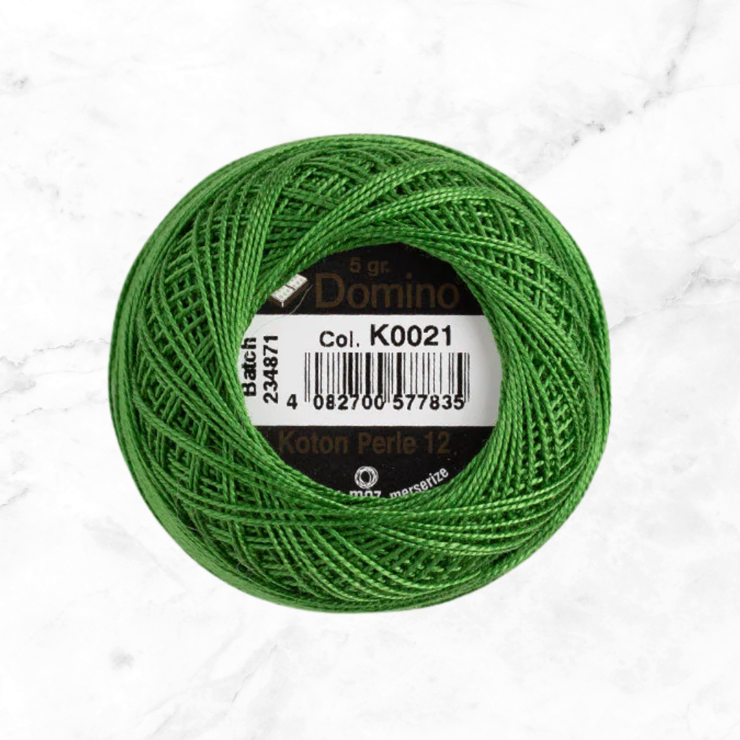 Coats Domino Cotton Perle Embroidery Thread Size 12 and 0.2 Oz.(5 Gr ), Green - 4590012-K0021